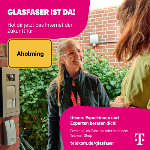 Meldung vom 26.01.2026 Ab sofort ist im Auftrag der Telekom ein Beraterteam im Ausbaugebiet unterwegs, welches den Bürger*innen in Aholming die Möglichkeit zur Beratung und Bestellung vor Ort direkt an der Haustür anbietet.